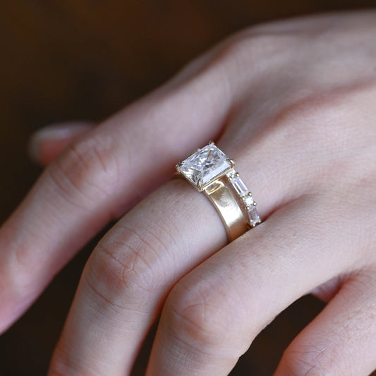 Solid Gold Radiant Cut Moissanite Wedding Ring Set