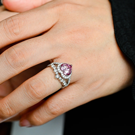 CausYou Solid Gold Heart Cut Pink Moissanite Engagement Ring Set, Heart Cut Bridal Set, Vintage Promise Ring Set, Gift for Women Wife