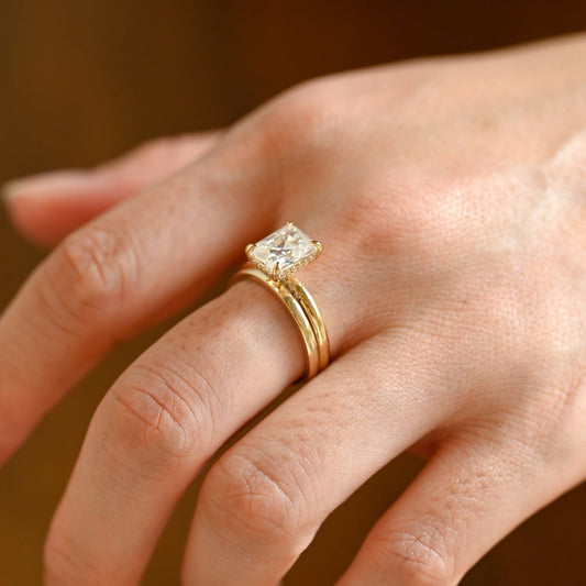 Solid Gold Radiant Cut Moissanite Engagement Ring and Wedding Ring Set, Bridal Ring Set, Gift for Woman, Wife