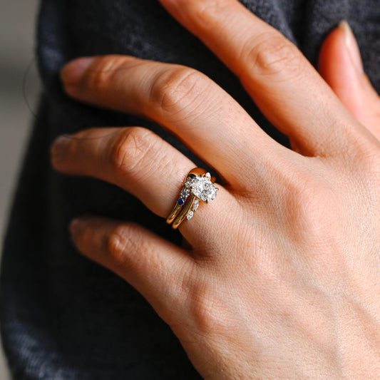 CausYou Solid Gold Oval Cut Moissanite Wedding Ring Set, Irregular Cigar Band, Bridal Set Engagement Ring Set for Women