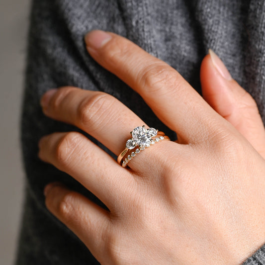 CausYou Solid Gold Three Stone Oval Cut Moissanite Wedding Ring Set, Bridal Set, Engagement Ring Set for Woman