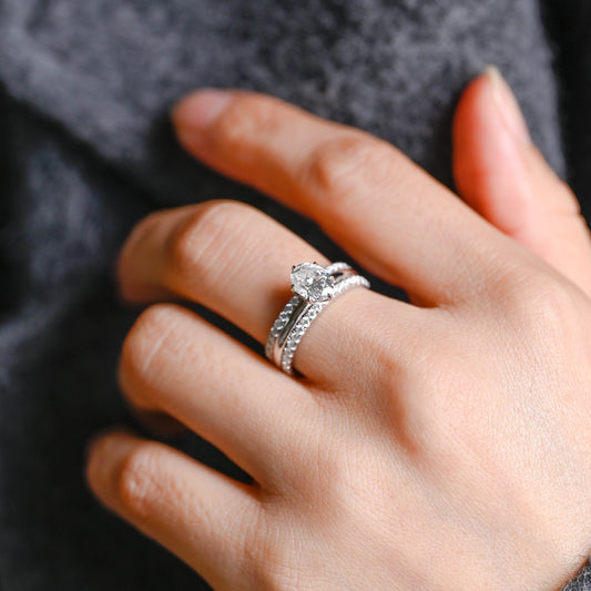 Solid Gold Round Cut Moissanite Engagement Ring Set