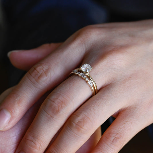 Solid Gold Cushion Cut Moissanite Engagement Ring and Wedding Ring Set
