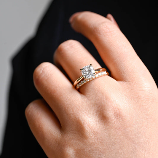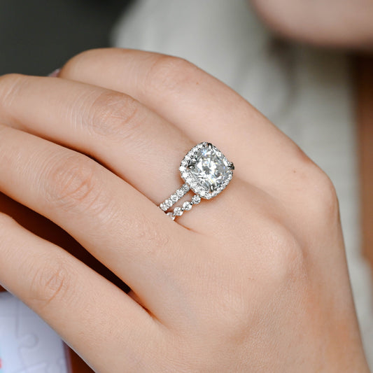 CausYou Solid Gold Cushion Cut Moissanite Engagement Ring and Wedding Ring Set