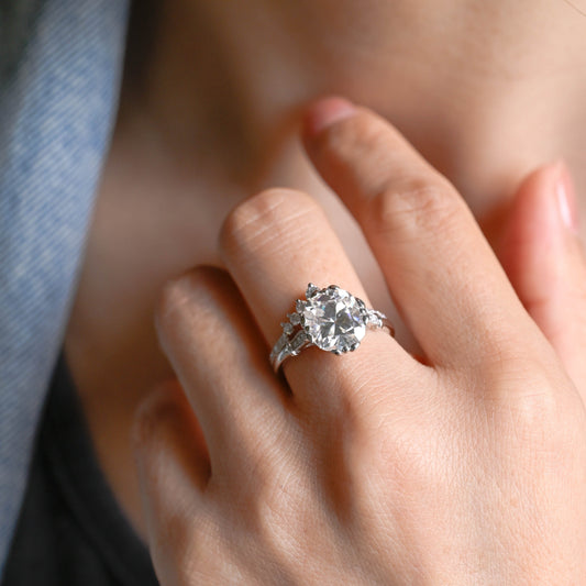CausYou Solid Gold Old Mine Cushion Cut Moissanite Engagement Ring and Wedding Ring Set, Bridal Set