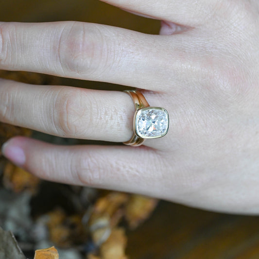 Solid Gold Bezel Elongated Cushion Cut Moissanite Engagement Ring Set