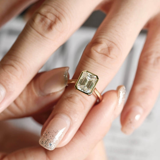 CausYou Solid Gold D/VS1 Emerald Cut Diamond Engagement Ring Cathedral Ring, Lab Grown Diamond Solitaire Ring, Bezel Promise Ring, Gift for Women Wife