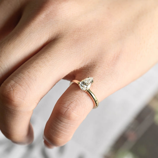 Solid Gold D/VS1 Pear Cut Lab Grown Diamond Engagement Ring, IGI Certified Diamond Promise Ring