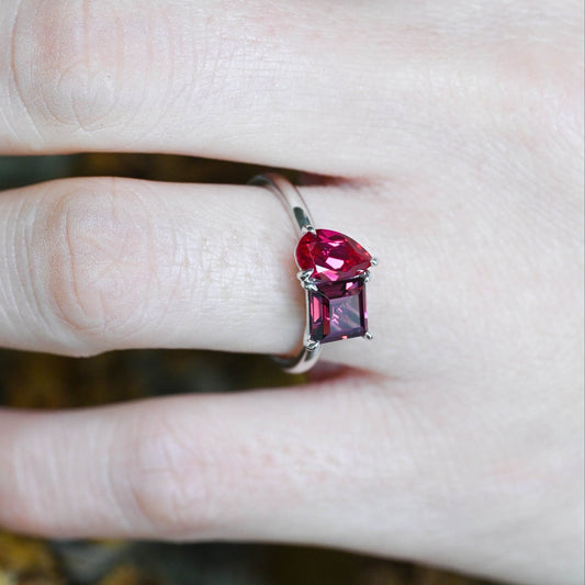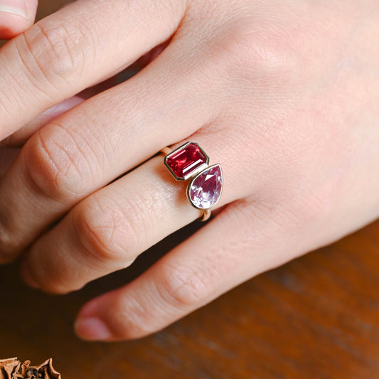 Solid Gold Toi Et Moi Heart Cut Garnet & Pear Cut Pink Sapphire Engagement RingVendor:CausYouRegular price From $489.00 USDRegular priceUnit price per