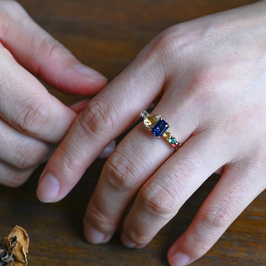 Toi et Moi Ring, Solid Gold Emerald Lab Grown Blue Sapphire & Pear Aquamarine Sapphire Engagement RingVendor:CausYouRegular price From $459.00 USDRegular priceUnit price per-