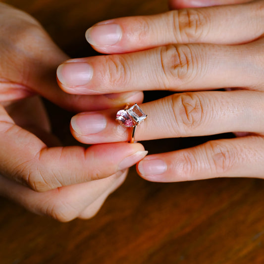 Solid Gold Toi et Moi Pink Emerald Cut Lab Grown Sapphire & Pear Cut Moissanite Engagament RingVendor:CausYouRegular price From $429.00 USDRegular priceUnit price per-