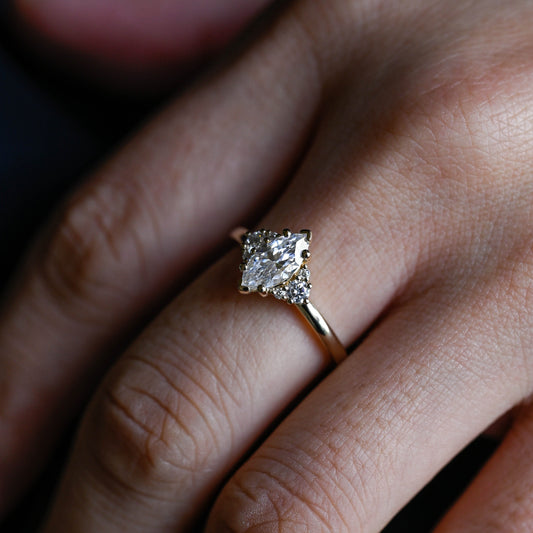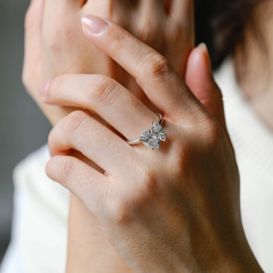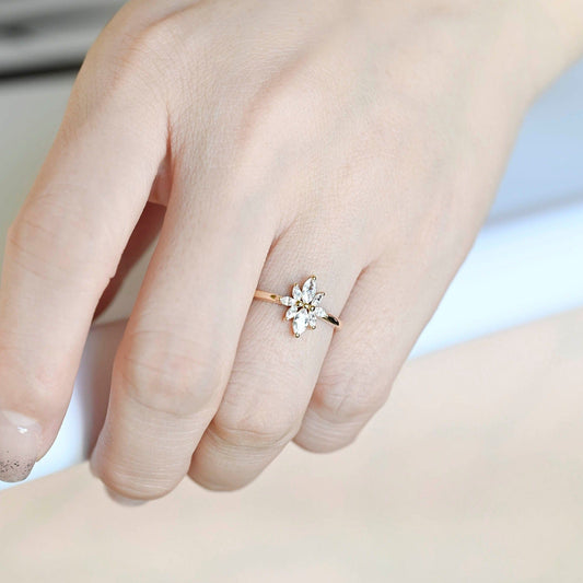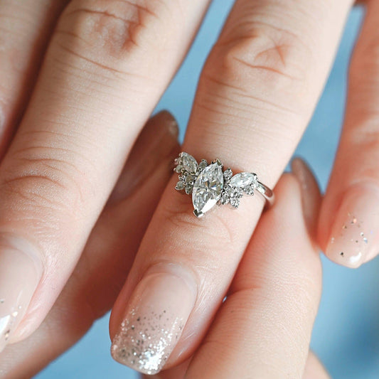 CausYou Solid Gold Marquise Lab Grown Diamond Ring, Cluster Engagement Ring, Promise Ring