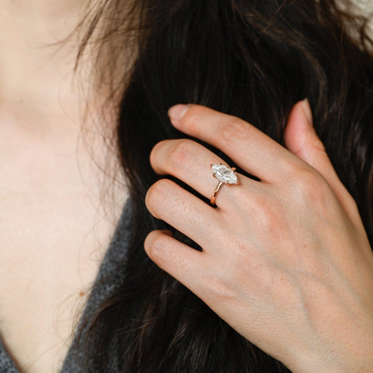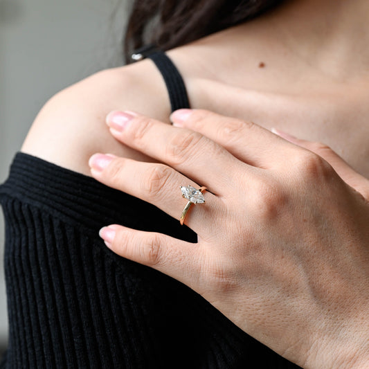 CausYou Solid Gold D/VS1 Marquise Cut Lab Grown Diamond Ring, Solitaire Bridal Engagement Ring