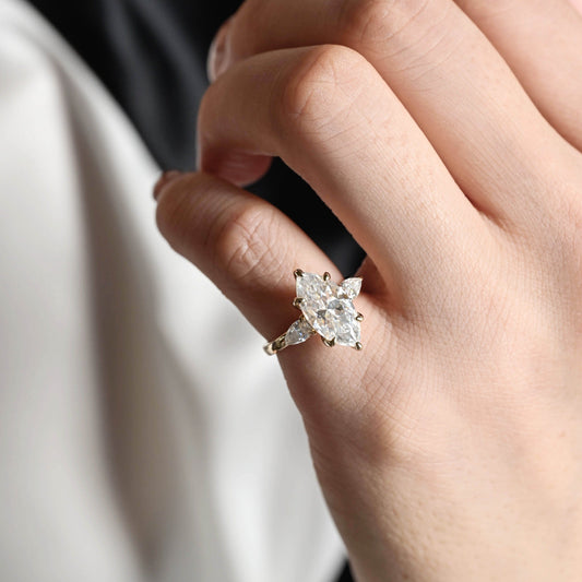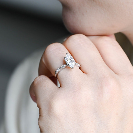 CausYou Solid Gold D/VS1 Marquise Cut Lab Grown Diamond Engagement Ring, Marquise Accents Wedding Ring