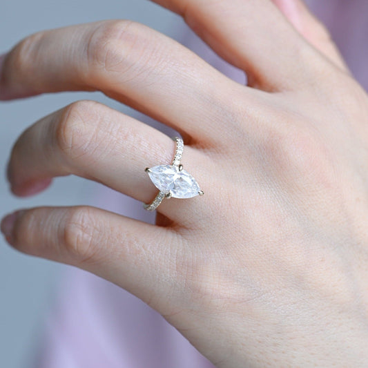 CausYou Solid Gold D/VS1 Marquise Cut Lab Grown Diamond Engagement Ring, Pave Promise Wedding Ring