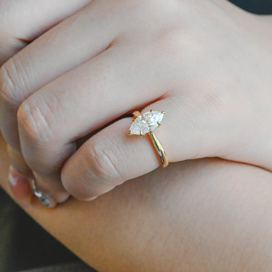 Solid Gold D/VS1 Marqusie Cut Lab Grown Diamond Engagement Ring, Promise Ring, Gift for Women Wife