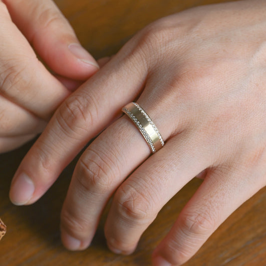 Solid Gold Round Moissanite Matte-Polish Double Layer Mens Ring