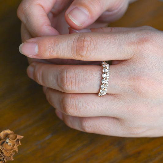 Solid Gold Curved Moissanite Wedding Band, Two Raw Stacking Wedding Ring