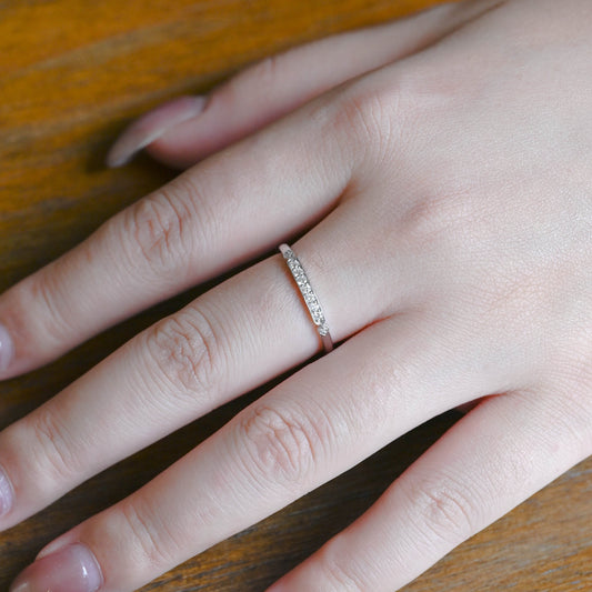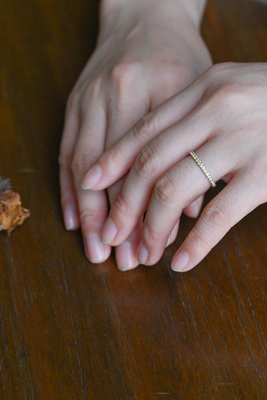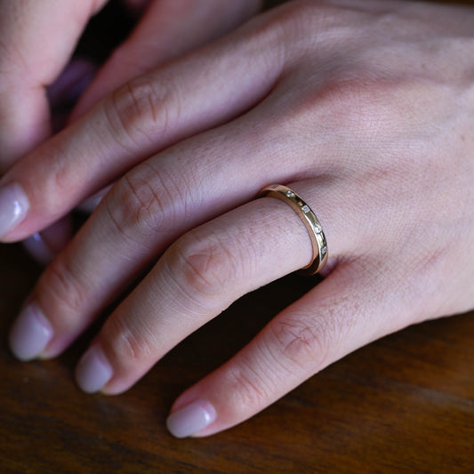 Solid Gold Half Eternity Vintage Style Round Cut Moissanite Wedding Band