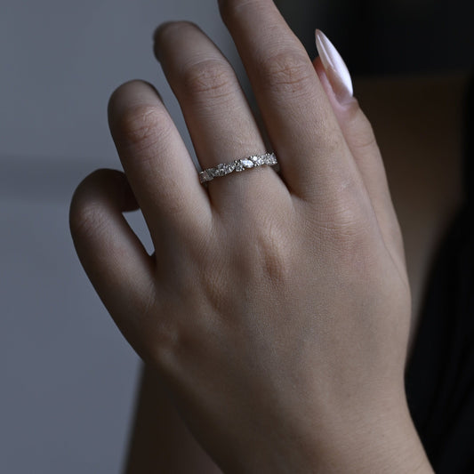Solid Gold Full Eternity Round Cut Moissanite Wedding Band