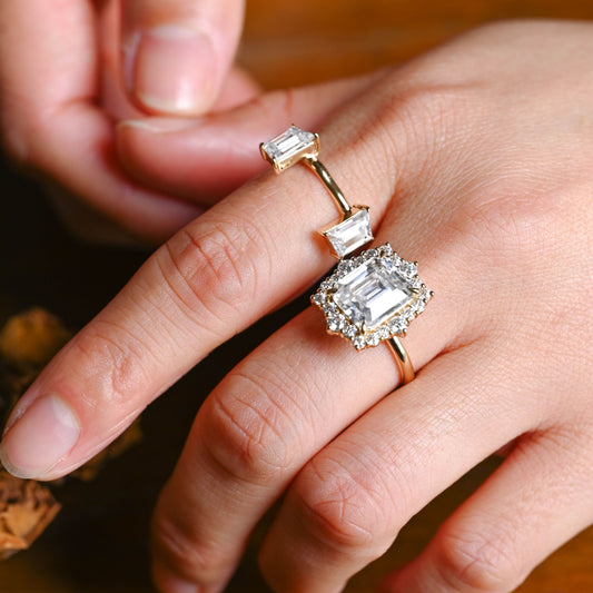 Solid Gold Open Trapezoid Cut Moissanite Notched Wedding Band