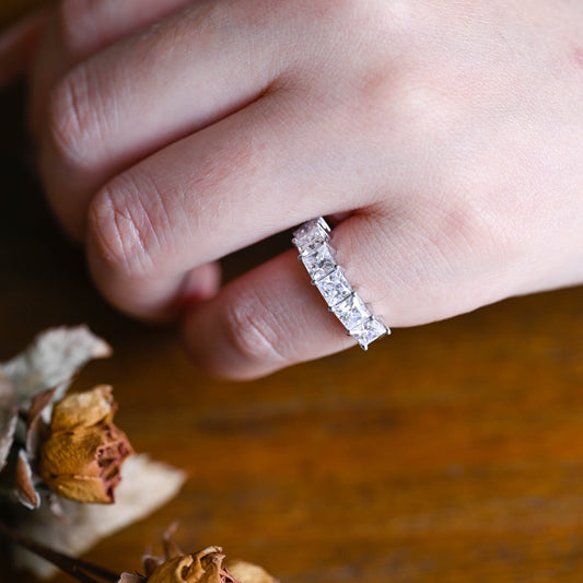Solid Gold Princess & Round Cut Moissanite Wedding Band