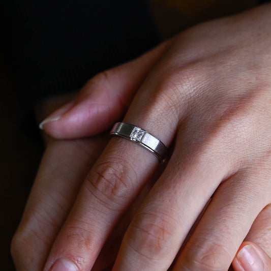 CausYou Solid Gold 5MM High Polish/Matte Finish Men's Princess Cut Moissanite Ring, Minimalist Wedding Band, Gift for Man, Husband