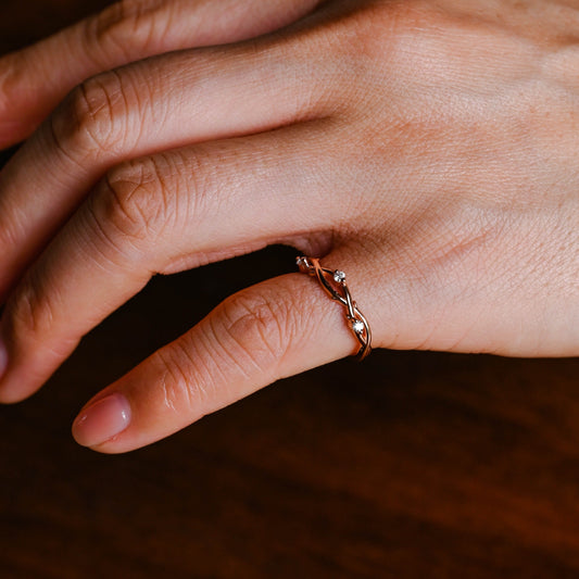 CausYou Solid Gold Leaf Branch Moissanite Wedding Band, Nature Inspired Dainty Wedding Band, Stacking Matching Band for Women