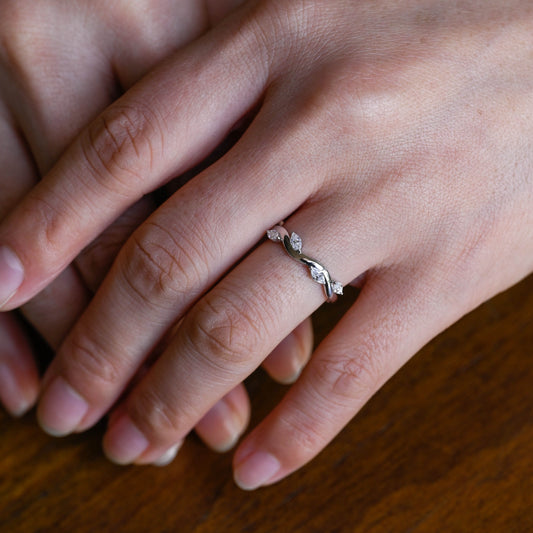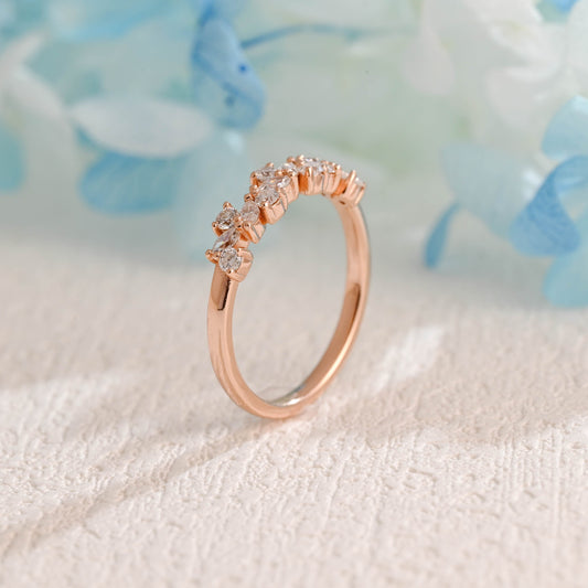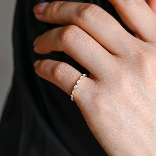 Solid Gold Nature Inspired Dainty Marquise Cut Moissanite Wedding Band