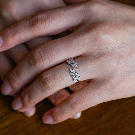 Solid Gold Leaf Ring Marquise Cut Moissanite Wedding Band