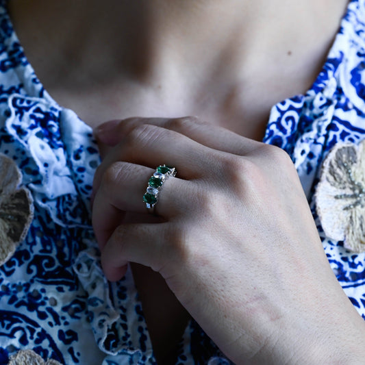 CausYou Solid Gold Oval Cut Lab Grown Emerald & Moissanite Wedding Band, Wedding Ring, Matching Band, Gift for Women Wife