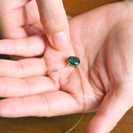 Solid Gold Oval Cut Lab Grown Emerald Pendant Necklace