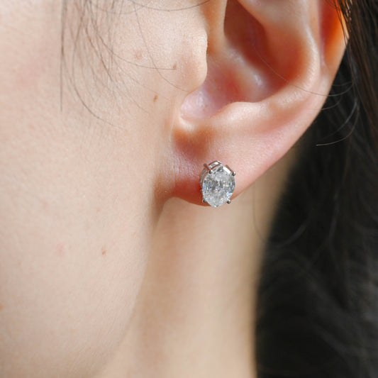 Solid Gold Solitaire Step Cut Oval Moissanite Earrings Studs