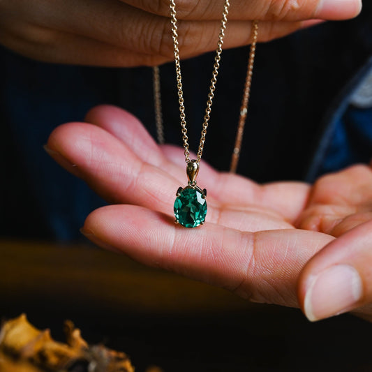 Solid Gold Solitaire Oval Cut Lab Emerald Pendant Necklace