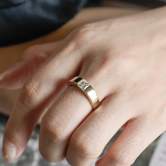 CausYou Solid Gold 5mm Width D/VS1 Princess Cut Lab Grown Diamond Wedding Band, Men's Ring, Gift for Husband