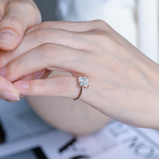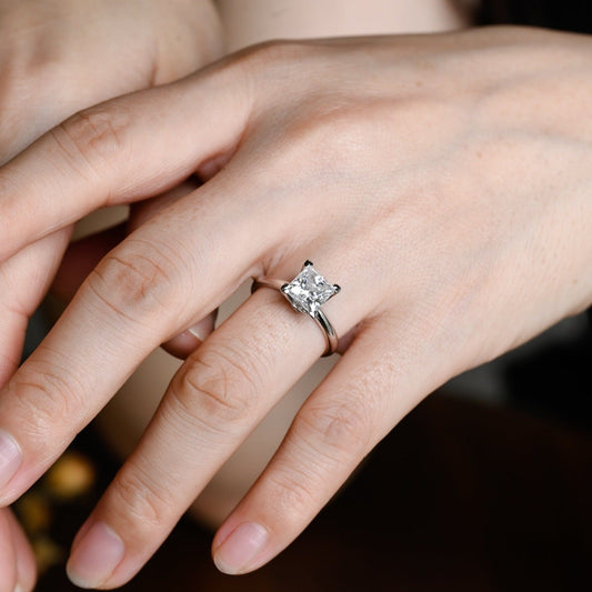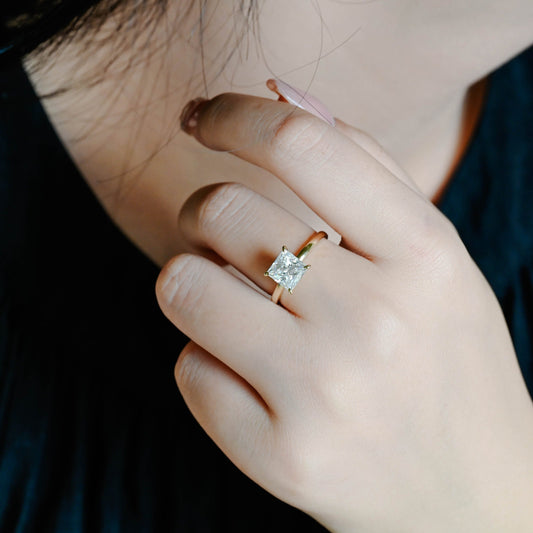 CausYou Solid Gold D/VS1 Princess Cut Lab Grown Diamond Wedding Ring, Low Setting Engagement Bridal Ring