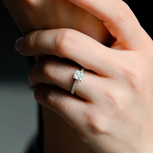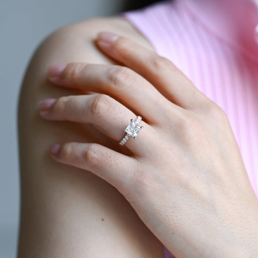 CausYou Solid Gold D/VS1 Princess Cut Lab Grown Diamond Ring, Pave Engagement Ring, Bridal Wedding Ring
