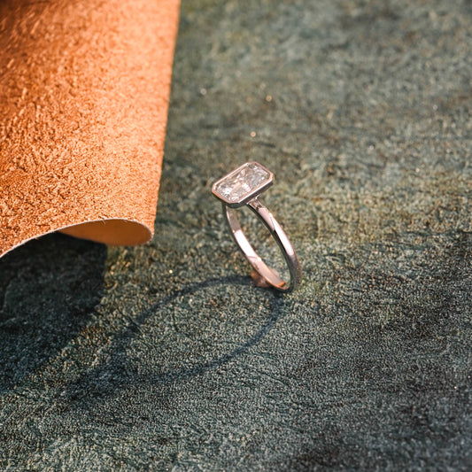 CausYou Solid Gold D/VS1 Bezel Radiant Cut Lab Grown Diamond Engagement Ring, Solitaire Bridal Ring for Her