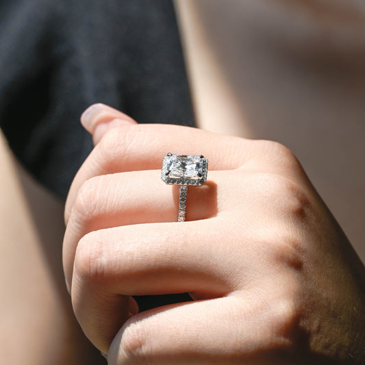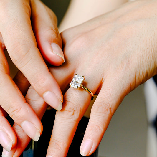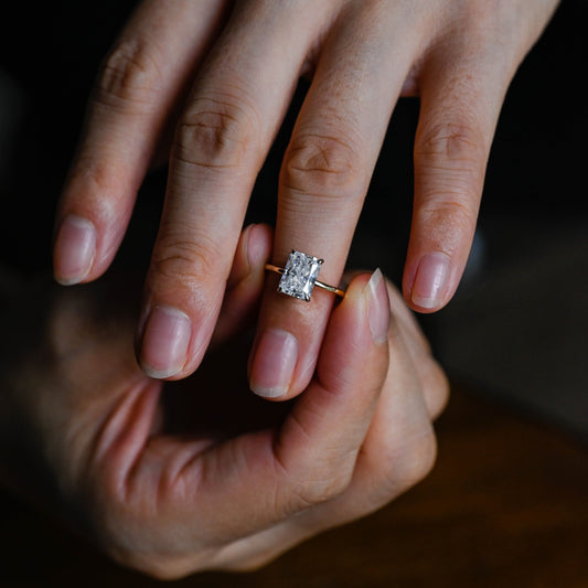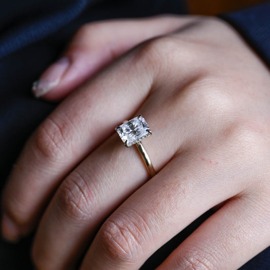 Solid Gold Hidden Halo D/VS1 Radiant Cut Lab Grown Diamond Engagement Ring