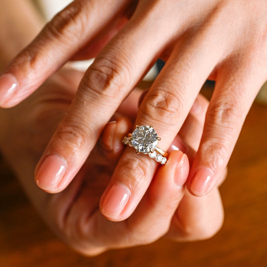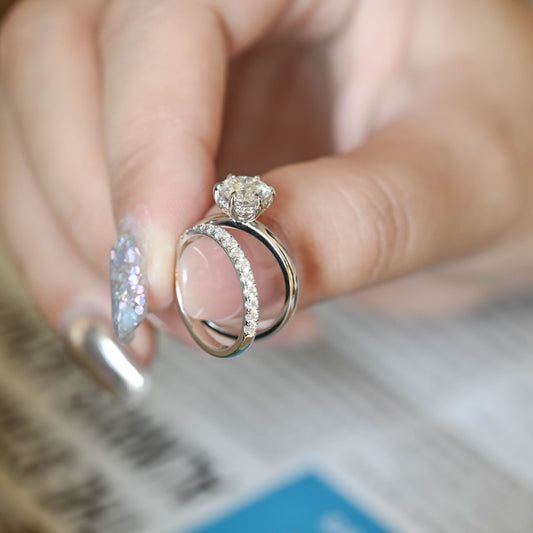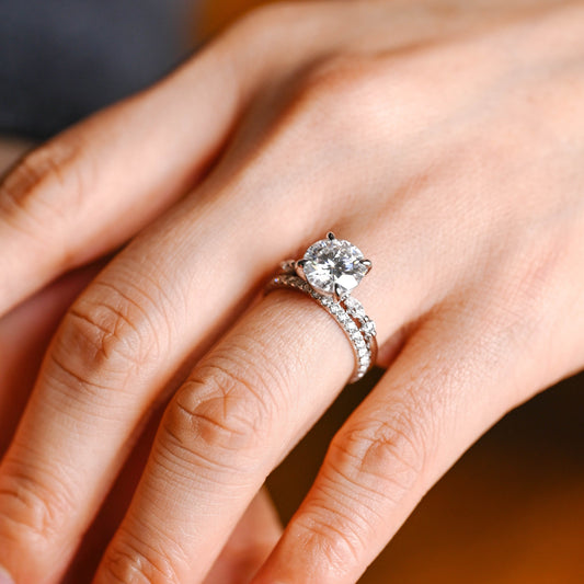 Solid Gold Round Cut Moissanite Engagement Ring Set