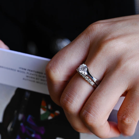 Solid Gold Round Cut Moissanite Engagement Ring Set Crossover Ring, Bridal Set