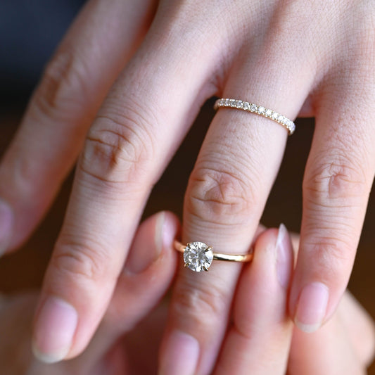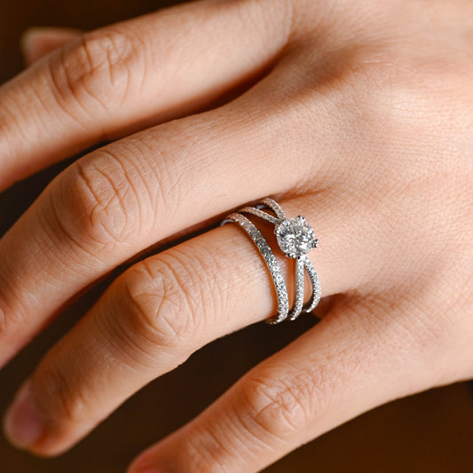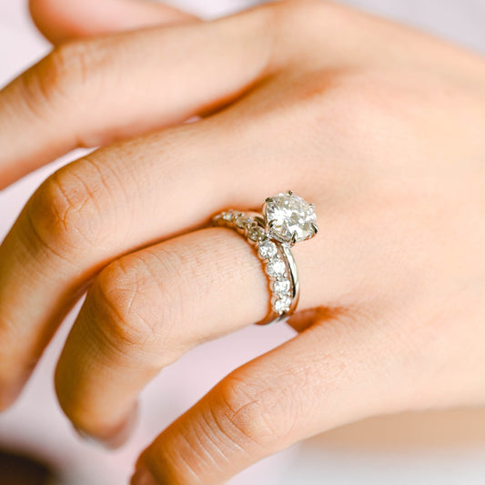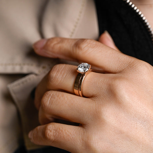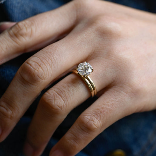 Solid Gold Solitaire Round Cut Moissanite Engagement Ring Set