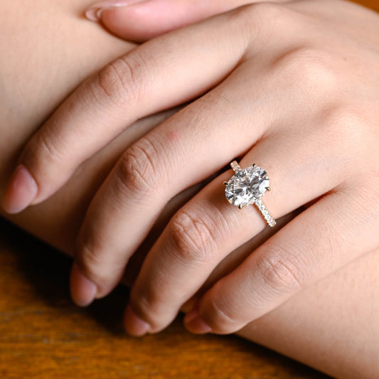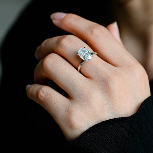 Solid Gold Solitaire Crushed Ice Oval Cut Moissanite Engagement Ring