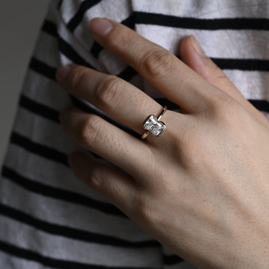 Solid Gold Radiant Cut Moissanite Engagement Ring Half Bezel Ring