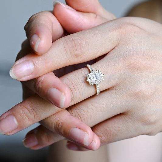 Solid Gold Double Halo Oval Cut Moissanite Engagement Ring