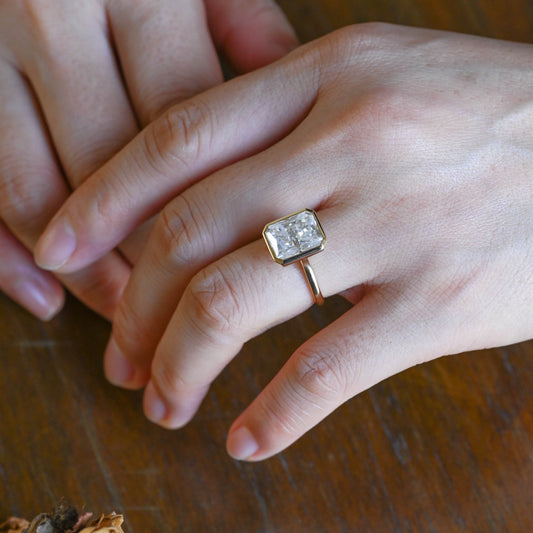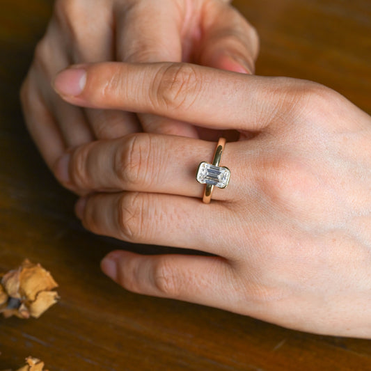 Solid Gold 2.5mm Width Half Bezel Emerald Cut Moissanite Engagement Ring