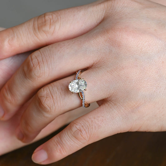 Solid Gold Pave Oval Cut Moissanite Engagement Ring