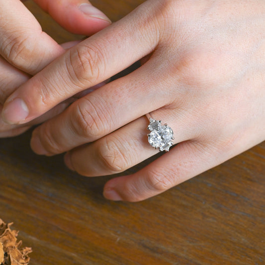 Solid Gold Cluster Round Cut Moissanite Engagement Ring