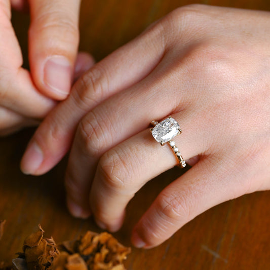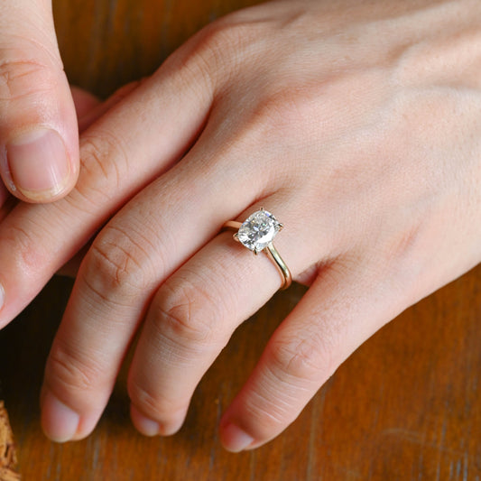 Solid Gold Hidden Halo Elongated Cushion Cut Moissanite Engagement Ring