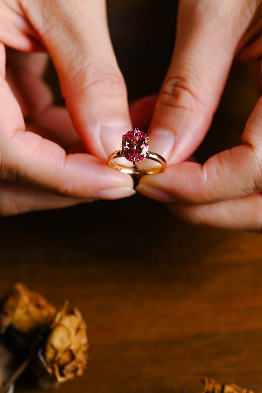 Solid Gold Oval Cut Pink Sapphire Engagement Ring